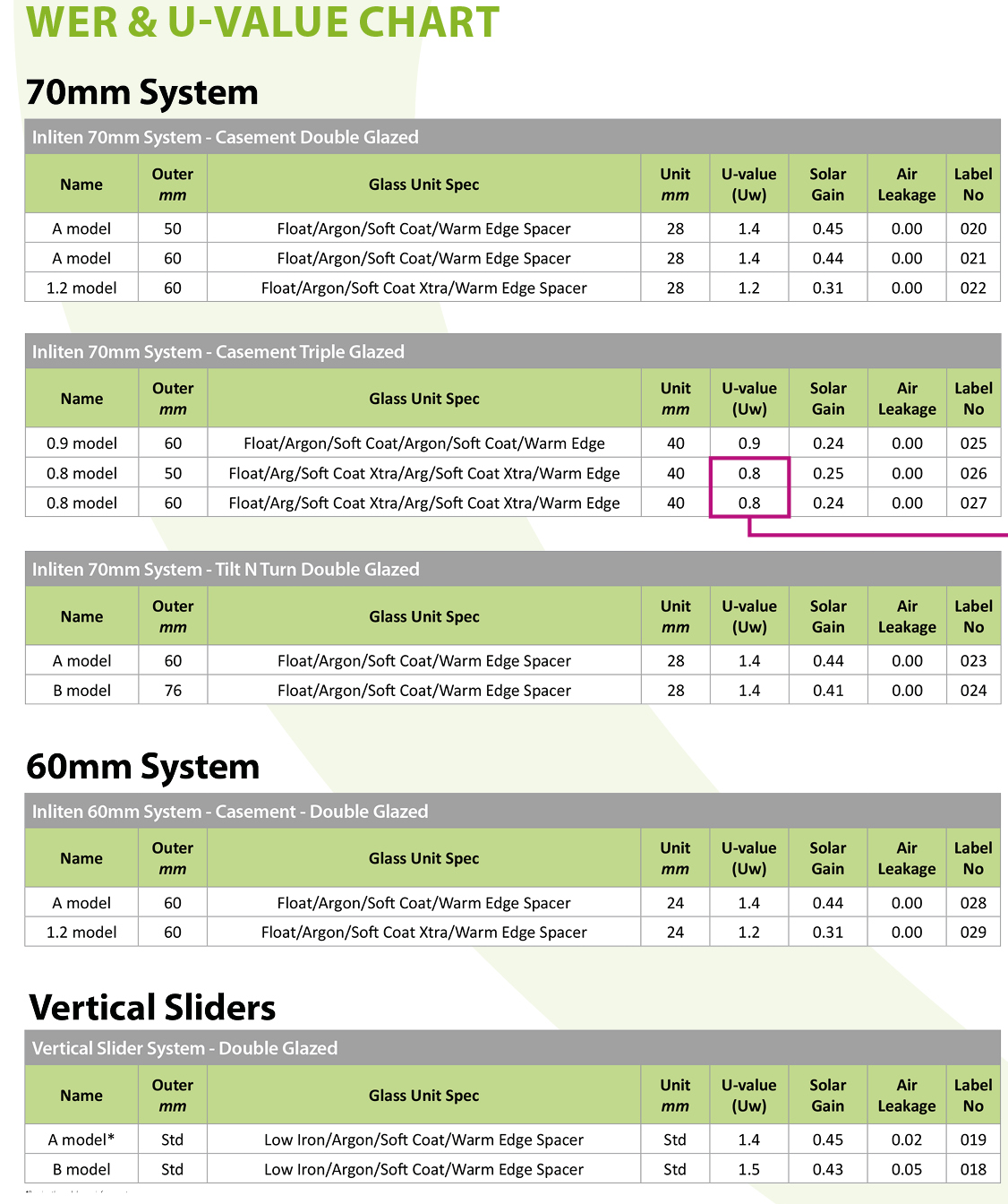 U-values take into account all components of the window including the frame, glass and spacer bar; therefore the lower the U-value, the more energy efficient